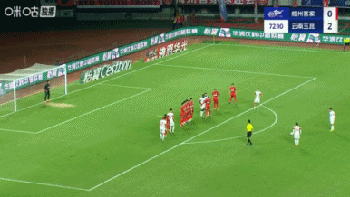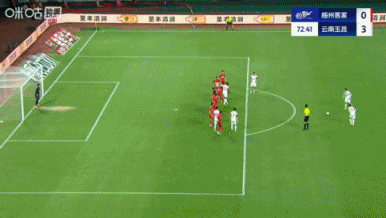 10月24日讯 玉昆vs梅州比赛第73分钟,迪力穆拉提禁区外直接任意球破门,玉昆3-0梅州